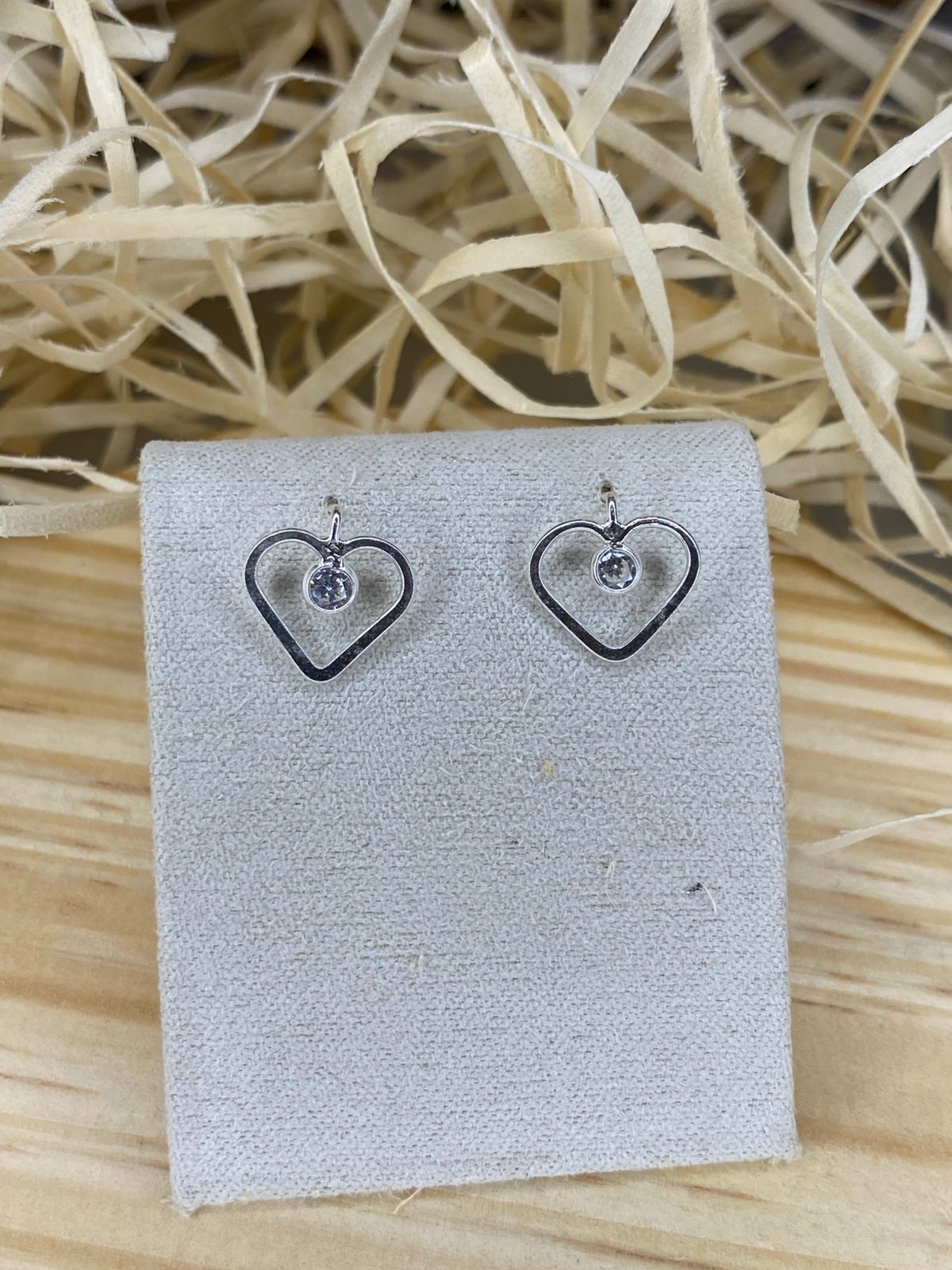 Brinco coração vazado, com ponto de luz.